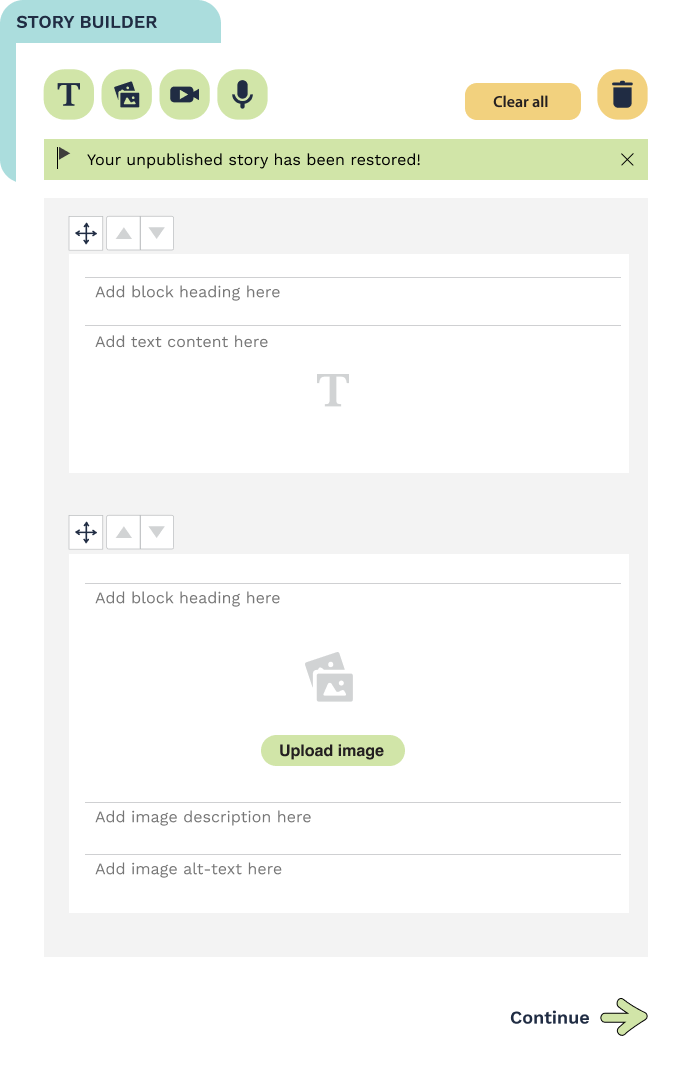 When a draft story is detected, give user the option to load the draft, or to start a new story (and delete existing draft). Make it clear whether or not the draft is already published.